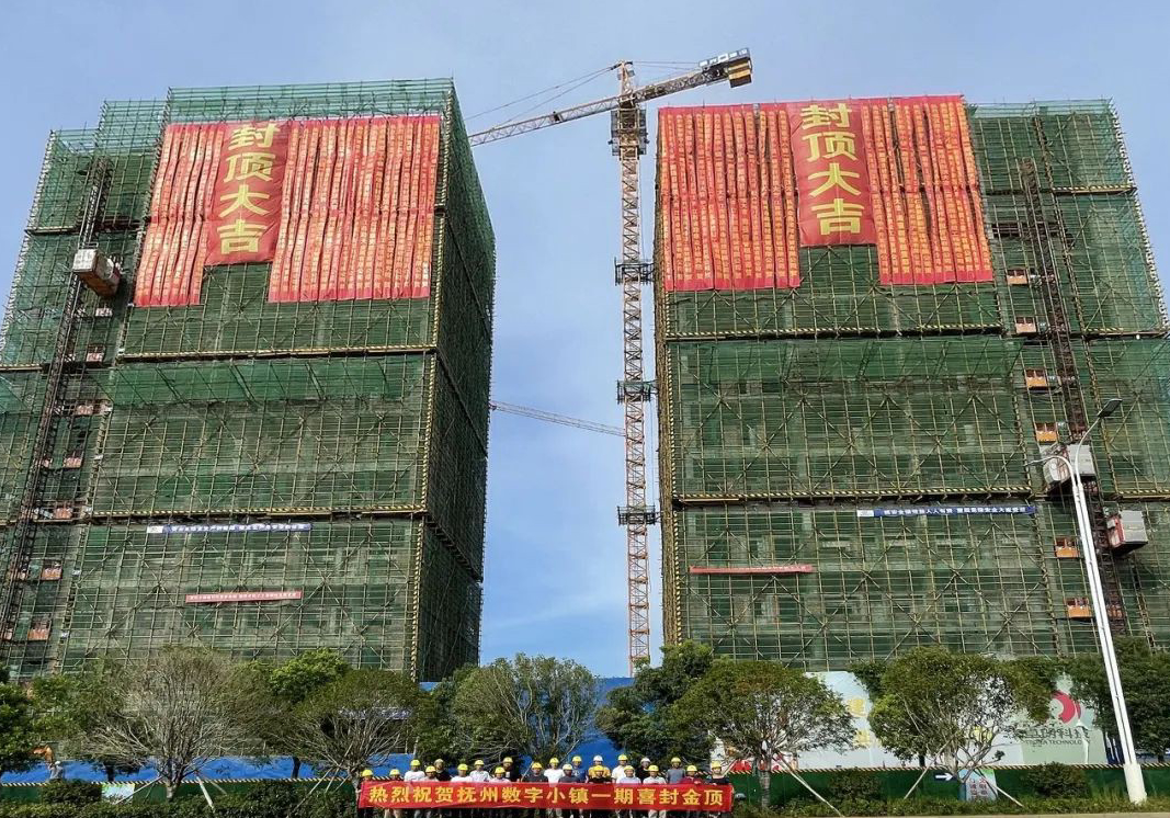 7月21日,伴隨著最后一方混凝土澆筑完成,公司承建撫州數字小鎮項目一期正式封頂。項目概況撫州數字小鎮(信息技術產業園)是公司負責設計、采購、施工EPC總承包項目,分三期開發建設。一期總建筑面積59721.56平方米,共9棟樓,其中包括兩棟公寓、六棟別墅、一棟招商中心。工程在2021年11月1日打下第一根樁,2022年1...